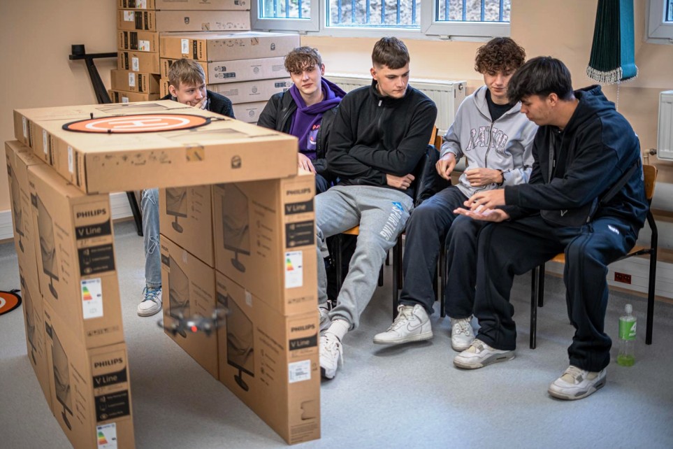 Później przyszedł czas na coś bardziej emocjonującego – pierwsze loty dronem. Jak stwierdzili sami uczestnicy, sterowanie urządzeniem nie jest wcale takie trudne i daje ogrom satysfakcji.