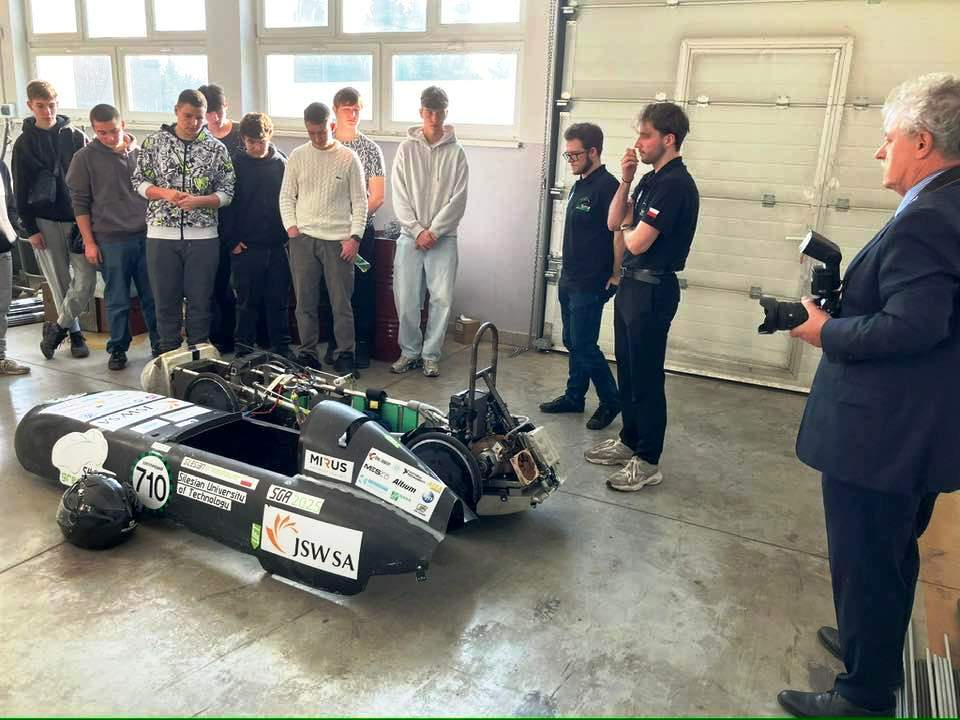 Podczas spotkania zaprezentowali elektryczny bolid wyścigowy, który sami zaprojektowali i zbudowali od podstaw. Uczniowie mogli z bliska obejrzeć nowoczesne rozwiązania technologiczne i poznać proces tworzenia pojazdu elektrycznego na poziomie akademickim.
