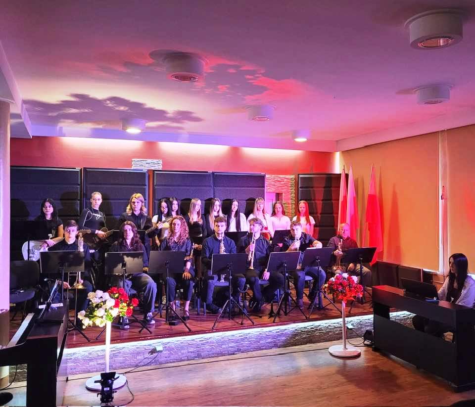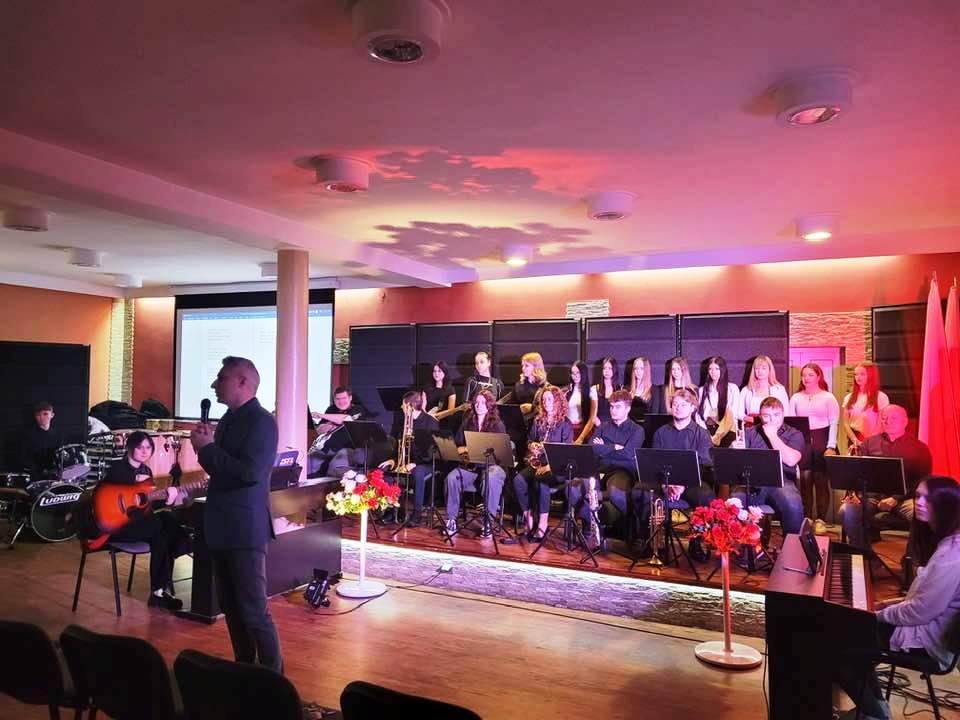 Dyrekcja, nauczyciele oraz uczniowie szkoły wspólnie odśpiewali „Mazurka Dąbrowskiego”, oddając hołd wszystkim, którzy przyczynili się do odzyskania przez Polskę niepodległości. Następnie szkolny Big Band zaprezentował utwory o tematyce patriotycznej, wprowadzając zebranych w podniosły nastrój.